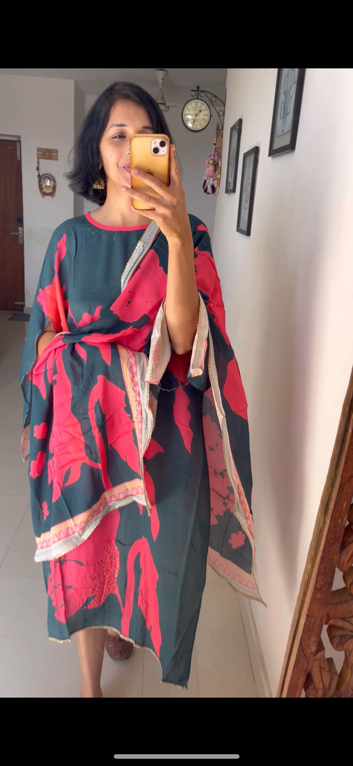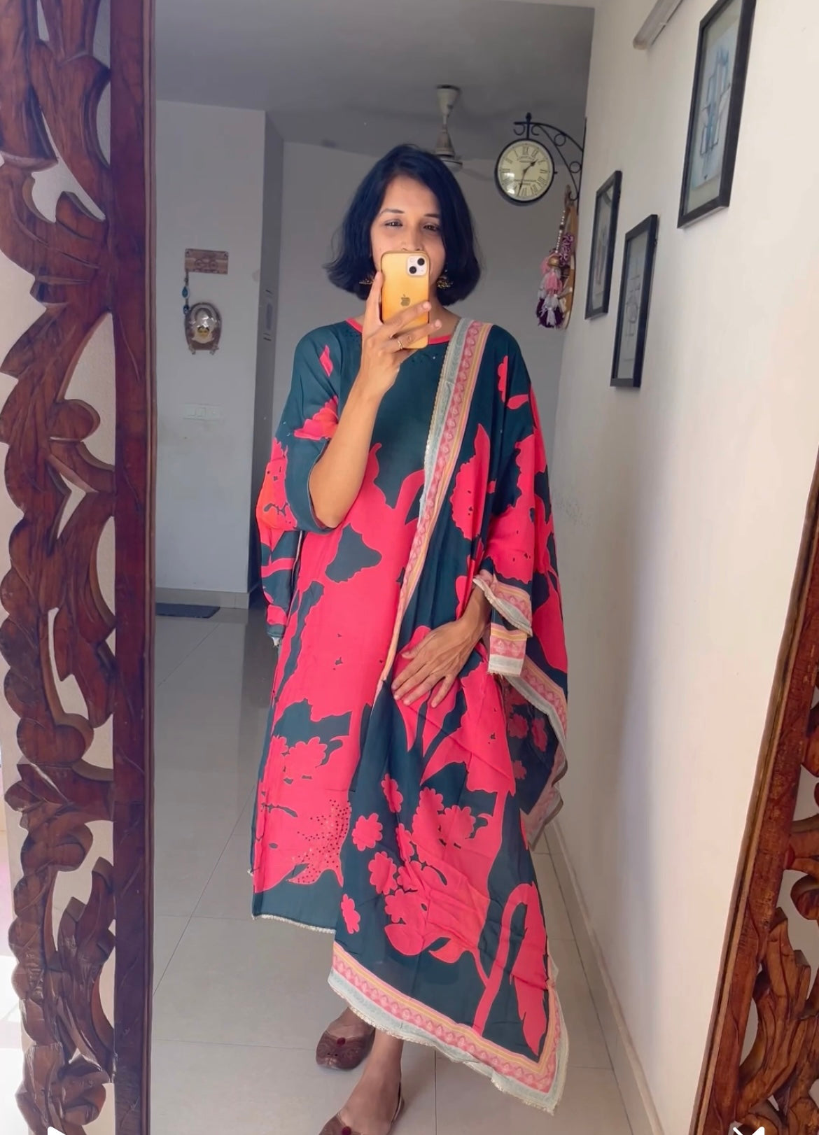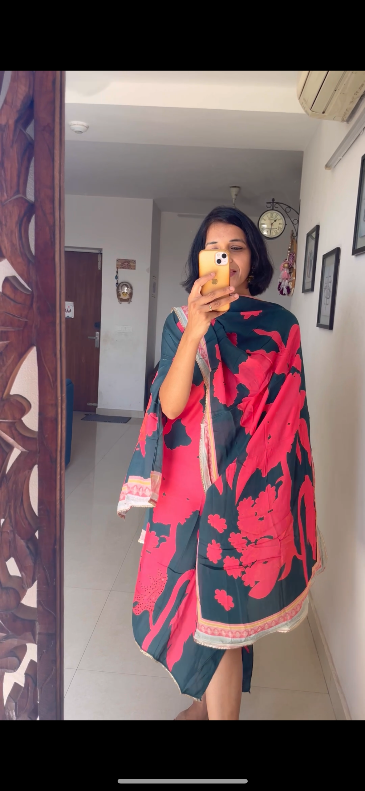 Super soft Muslin cotton semi stitched suit set with beautful prints all over, clubbes with a beautiful printed dupatta