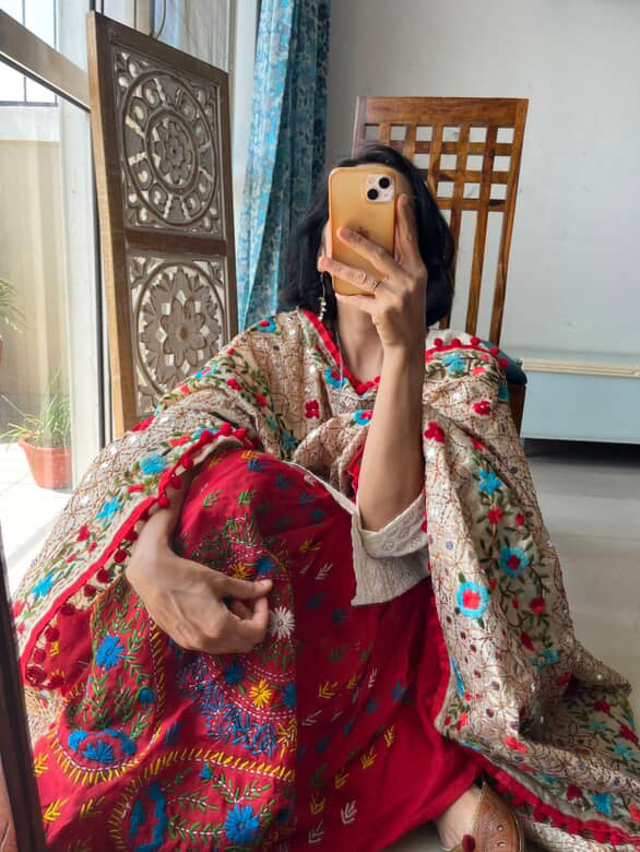 Contrast handwork dupatta, length 2.5mts